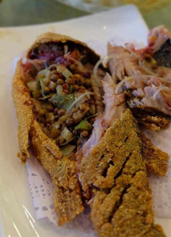 看看這就是魚肚子裡的景象,用料還是挺豐富的,至於是怎麼做的,店傢說是獨傢秘方,不便外傳。