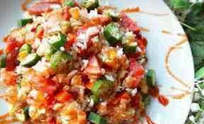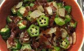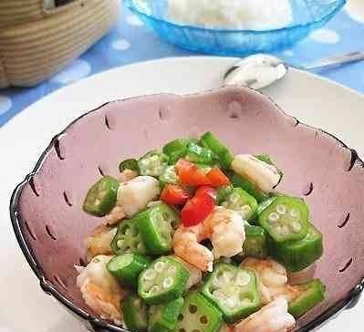 取適量的秋葵,切掉頂部的舊部分,切成段。它有一定的厚度,以防止水淹時營養物質流失。取適量蝦殼。蝦去皮後,用水洗兩遍。將秋葵放入沸水中煮約20秒。取出魚後,用冷水加熱鍋。倒入食用油。炒入蒜末,蝦仁入鍋,炒色後倒入秋葵片。在出鍋前用少許鹽調味並裝飾秋葵炸雞