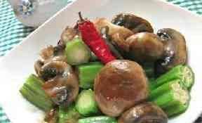 練習1.提前準備好原料2.將秋葵洗凈,去蒂。一鍋開水煮(3分鐘,不要太久)3.將煮好的秋葵放入冷水中。冷卻的同時撈出瀝幹的水份,裝盤待用。4、將蒜剁碎放入碗中,倒入事先準備好的蔥油,加入醬油、鹽和糖。5.調汁。撒上秋葵,吃蘑菇炒秋葵