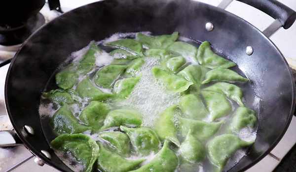 5、煮餃子:將包好的餃子開水下鍋,用鍋鏟輕輕推動防止粘連,點水3次煮至餃子全部浮後,即可關火。