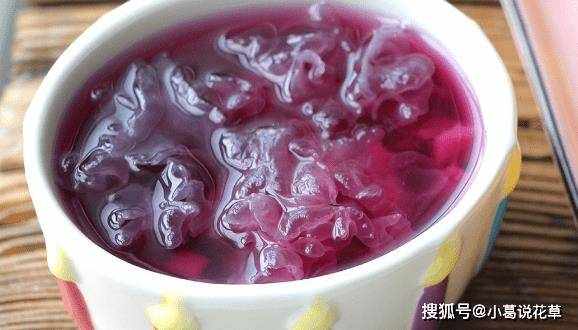 紫薯白菇湯是一道排毒滋補的甜品,營養極其豐富。小火煮至奶昔軟滑,適合秋冬進補。紅薯含有豐富的蛋白質,大量的花青素具有很高的藥用價值,花青素對多種疾病有預防和治療作用。
