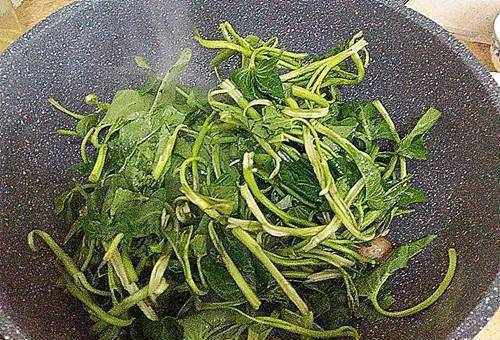 5.炒至葉子變軟,加入適量的鹽,翻炒幾下即可起鍋。