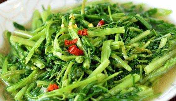 空心菜據說具有清熱、解毒、殺菌和消炎的功效。這個季節最常見的細菌是病菌!此外,空心菜還有促進腸蠕動、防止便秘的作用。消化不良的朋友可以多吃點;而且,空心菜還有潔牙、防齲齒、潤膚、降脂減肥的功效,晚上多吃不怕齲齒,長胖瞭!