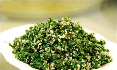 1馬頭蘭洗凈,用沸水焯一下,撈出浸入冰水中冷卻,瀝幹備用。