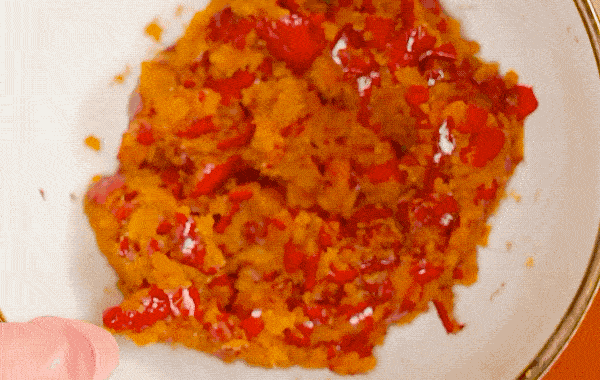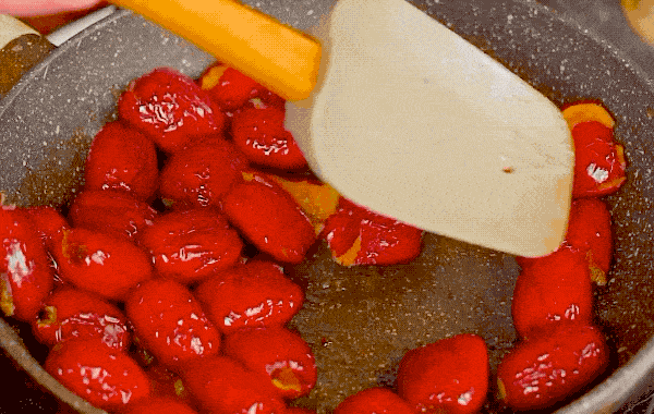 煮至水分都被紅棗吸收、鏟子能輕松壓碎時,倒入碗中,用搟面杖壓成棗泥。