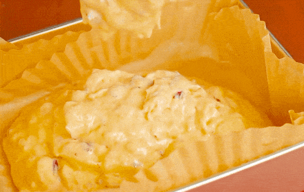 放涼後倒扣撕下模具,就可以切塊享用啦。