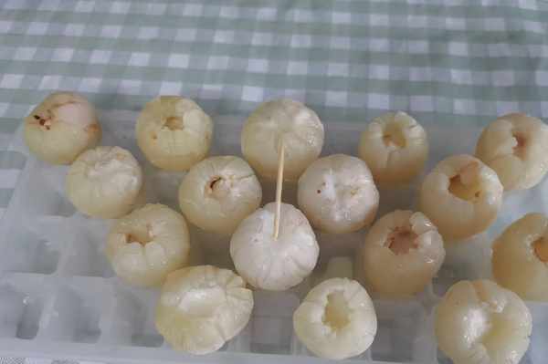 (4)制作步驟最難的就是去核,可能核取不出來,或者取出來後荔枝肉又散瞭,都是有可能出現的問題,但是,可以先試幾個,戳壞瞭就自己吃掉嘛,慢慢來,辦法總是比較多的。