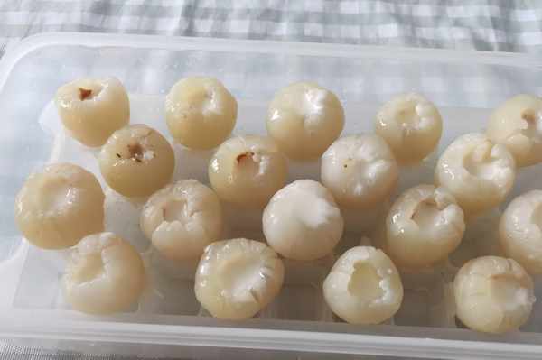 第一步,先把新鮮的荔枝放入清水中清洗一遍,洗去表面灰塵等,荔枝最好選擇核小的品種,如妃子笑,這樣方便後續取出荔枝的核。