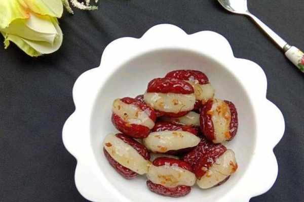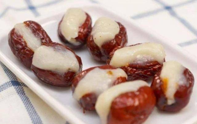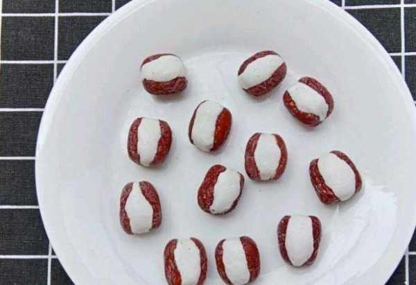 1.用一種微幹軟的紅棗。紅棗用清水洗凈,挑一邊,中間挖個洞。