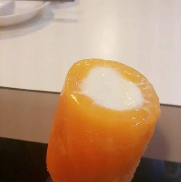 這個是冰棍和冰淇淋的結合,既能吃外面甜甜脆脆的冰棍,也能品嘗裡面牛奶味兒的冰淇淋,外邊是橙子味的,裡面是牛奶味的,吃起來好有層次感的!但現在已經沒有賣瞭!