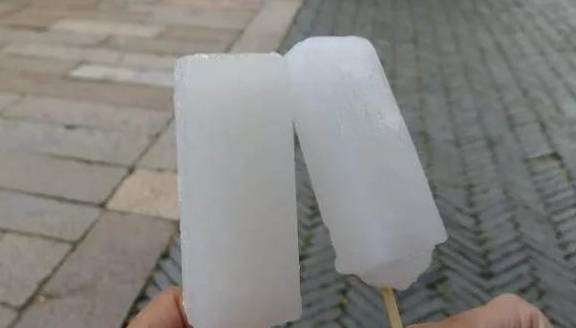 白糖冰棒,是年長一輩人的味道,白糖水凍成長方塊形狀,就是夏天最美味的零食。用薄紙包著,放小木箱子裡,推自行車叫賣。價格非常便宜,一毛錢一根!
