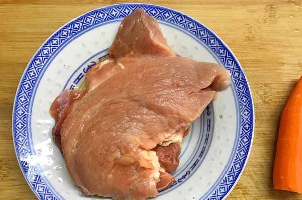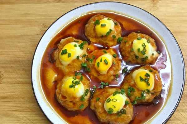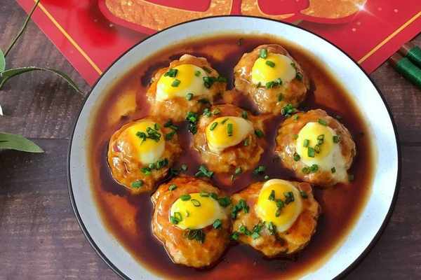 【配料】:豬肉一斤、胡蘿卜半個、鵪鶉蛋適量、鹽適量、生抽適量、蠔油適量、白砂糖適量、料酒適量