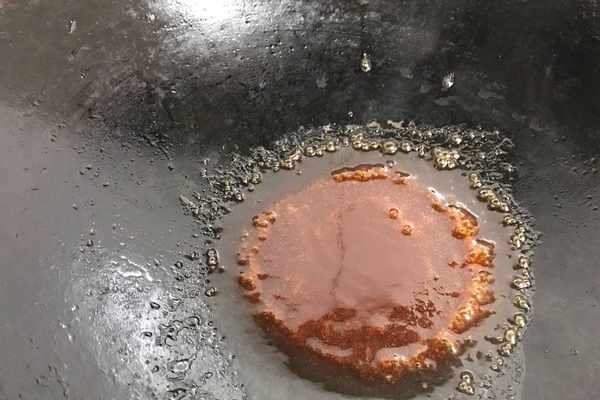 7、蒸肉蛋撻的時候來做一碗料汁,鍋中加入2勺生抽、3勺白糖、4勺醋還有兩勺的番茄醬,加入適量的水淀粉攪拌均勻做成糖醋汁備用。