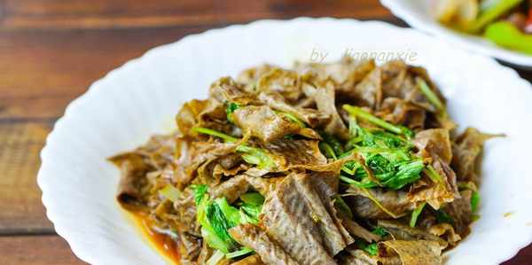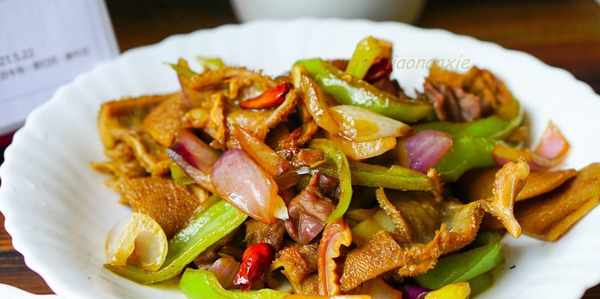 這個菜中的羊肚是打包回來的鹵羊肚,加上青椒和羊肉回鍋炒一下,非常好吃。出門吃飯不能光盤咱一定要打包,一點兒也不浪費。