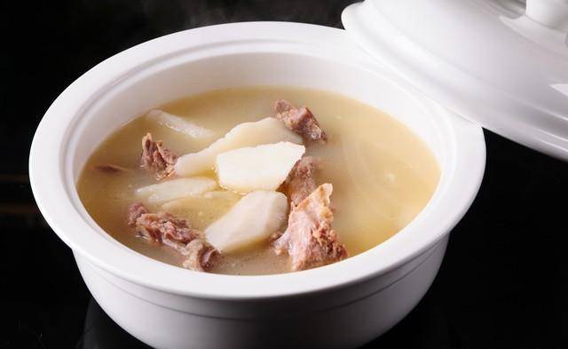 ③、三要削去外皮洗凈,切成小塊,放到排骨湯裡面燉煮20分鐘,然後加入食鹽再燉煮十分鐘關火。