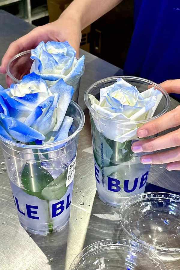沈陽品牌BLUE BUBBLE則在鮮花杯尚未走紅社交網絡前,就上架瞭“冰萃玫瑰鮮花杯”。消費者不需要自己買花,也不需要購買其他飲品,隻需2元,即可獲得與門店主題色相近的藍色玫瑰杯。其品牌主理人張汐言告訴記者,“冰萃玫瑰鮮花杯”是研發團隊的主意,希望給消費者帶來春天的浪漫和驚喜。