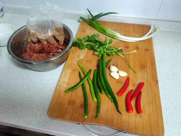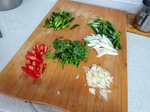 四根小尖椒、七根線椒,適量蔥蒜和大蔥。