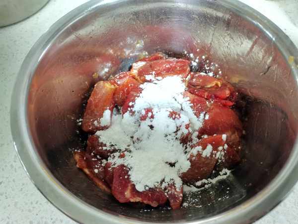 2、做椒鹽牛肉片,先來醃制牛肉片。