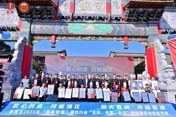 為全面展示昆明市官渡區美食文化的獨特魅力,充分挖掘官渡美食文化底蘊優勢,促進餐飲產業快速發展,實現官渡餐飲業特色化、品牌化、規模化的目標,進一步提升官渡特色餐飲的社會影響力,培養一批“官渡名廚”,打響一批“官渡名菜”,培育一批“官渡名店”,擦亮官渡“名廚、名菜、名店”招牌,吸引更多遊客到官渡觀美景、品美食,4月7日,由中共昆明市官渡區人才工作領導小組辦公室、官渡區總工會、官渡區人力資源和社會保障局主辦,昆明市餐飲與美食行業協會承辦, 2023年“尋味官渡”餐飲行業“名廚、名菜、名店”評選暨勞動技能競賽在昆明市官渡古鎮隆重舉行,同時為助力官渡餐飲高質量發展、推動縣域餐飲建設、優化行業服務體系、強化行業自律、樹立行業品牌,結合官渡區餐飲業發展實際,舉行昆明市官渡餐飲與美食行業協會和官渡區餐飲行業自律工作站成立掛牌儀式,昆明市官渡區區委副書記、人民政府區長 李德鴻、昆明市市場監管局調研員王昕、昆明市商務局貿服處處長侯振興、昆明市餐飲與美食行業協會會長徐強等領導嘉賓出席瞭活動的開幕式。