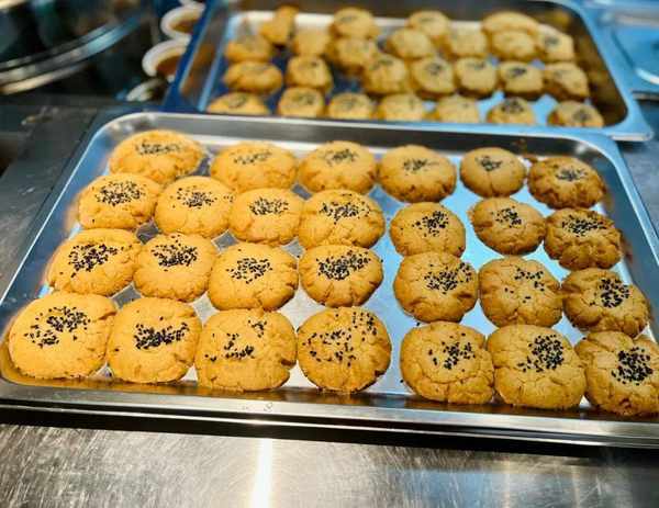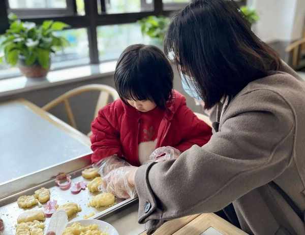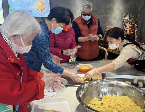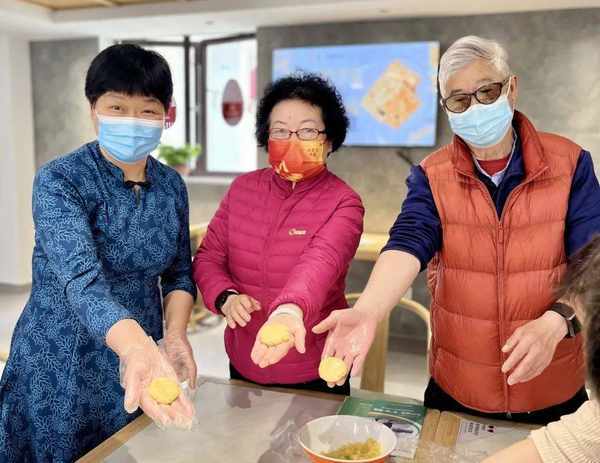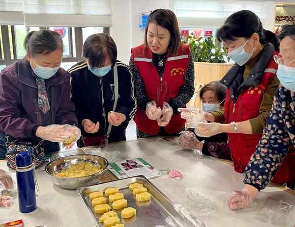 活動伊始,長者食堂的工作人員為大傢講解桃酥的制作方法,將低筋面粉、綿白糖、雞蛋液、玉米油、鹽、無鋁泡打粉攪拌均勻後,大傢用模具將面團捏出不同形狀,然後撒上些芝麻,放入烤箱上下火烤二十分鐘即可。桃酥出爐瞭,一口酥香,回味悠長。這就是桃酥的味道,更是我們小時候吃過的味道。