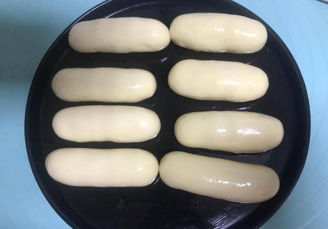 5、滾圓的面團,搓成粗條,分別在其表面刷上一層食用油,蓋好保鮮膜來進行查發30分鐘以上,如圖所示。
