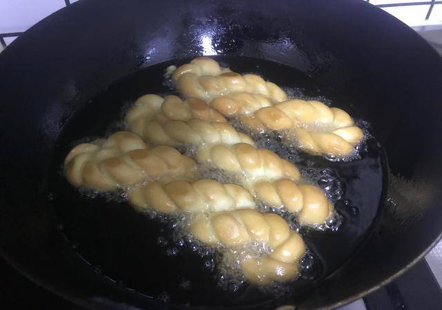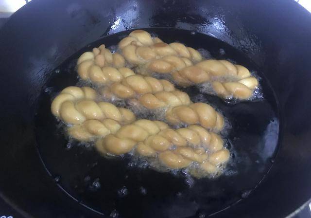 14、將其炸至整個麻花金黃色即可撈出,如圖所示。