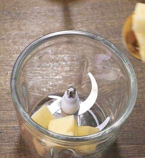 3.蘋果、紅棗、雞蛋、低筋面粉倒入輔食機中,攪打細膩。