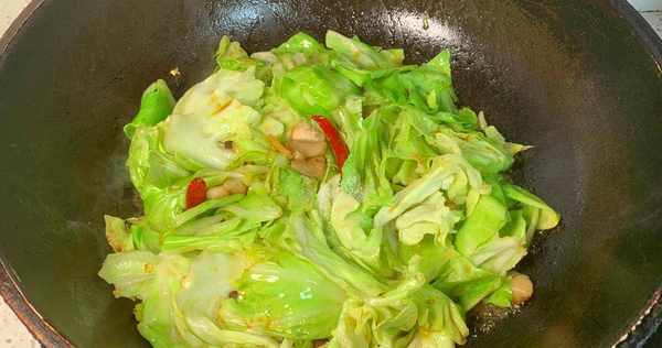 大火爆炒後,倒入少許的生抽、老抽、2小勺蠔油、少許白糖和少許的鹽爆炒,卷心菜會多炒出水,一定要大火爆炒,把水分炒幹,使卷心菜入味,最後關火盛出來即可。