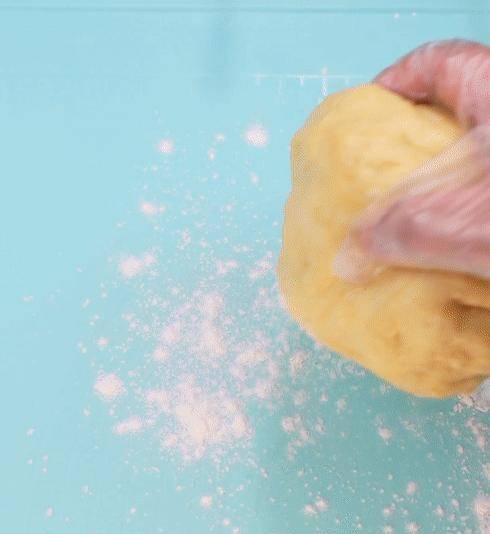 ●發酵好的面團可用刮刀沾幹粉先翻拌幾下,防止沾手。