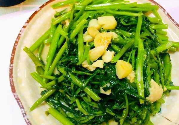 3、按照這個方式炒的空心菜,清香美味,營養豐富,口味很清淡,入口不油膩,空心菜含有豐富的微量元素和維生素,粗纖維素的含量較豐富,防止便秘,對中老年人有好處。