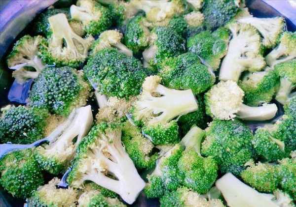 1、準備一朵新鮮的西蘭花,用鹽水浸泡一會兒,清洗幹凈,改刀切成小塊,起鍋燒水,水開加入少許植物油和食鹽,這樣能讓顏色更翠綠,放入西蘭花,焯燙幾分鐘。