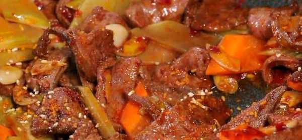 1、豬肝放進冰箱冷凍20分鐘,取出後切成兩半,用刀斜著切成薄片,放入清水中抓洗幾次,洗凈血水後擠幹水分。萵筍、胡蘿卜去皮洗幹凈,切成菱形片,洋蔥去皮切塊。