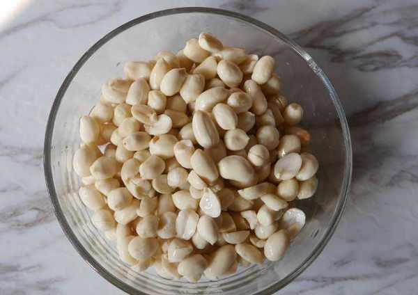 1、花生提前浸泡一個晚上,洗幹凈後倒入鍋中,加水煮一會兒,撈出剝掉紅衣。高壓鍋裡倒入適量清水,加入去瞭皮的花生仁,煮開後小火煮10分鐘。