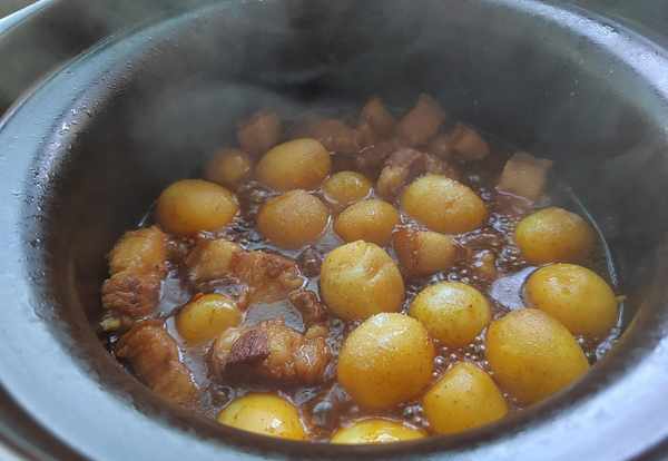 五花肉焯水後,切成小塊,瀝幹水分。先炒糖色,再放入五花肉炒勻,加一些八角、桂皮、薑片、香葉炒出香味,接著加入生抽、蠔油、料酒、紅燒醬油炒勻。倒入砂鍋中,加入適量熱開水,中火燉40分鐘。小土豆洗幹凈就可以瞭,不需要去皮,放入紅燒肉中,繼續燉20分鐘,最後大火收汁,加一點鹽調味就可以出鍋瞭,做法很簡單,喜歡的朋友們可以在傢裡試做一下!