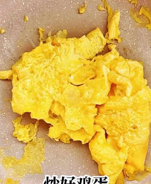 第四:鍋中加上少許食用油,等待油溫慢慢燒熱,將雞蛋液淋在鍋中,中小火慢慢煎至定型,用筷子攪動幾下,將其炒散盛出。