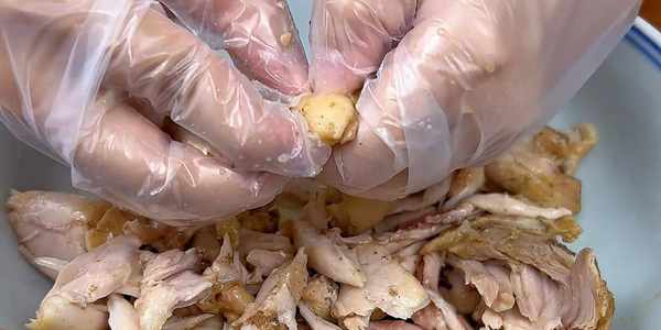 11.不燙手之後就把它撕成小塊。