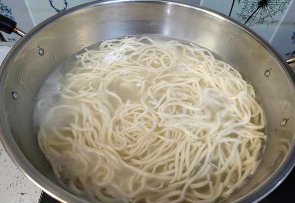 3、先燒一鍋清水,煮面條想要不發坨,一定要寬水煮面,就是水一定要多,因為水如果比較少的話,面條很容易發坨。