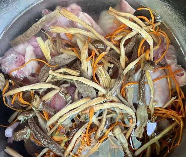 雞肉,黃花菜,鹿茸菇,蟲草花,食鹽,生薑