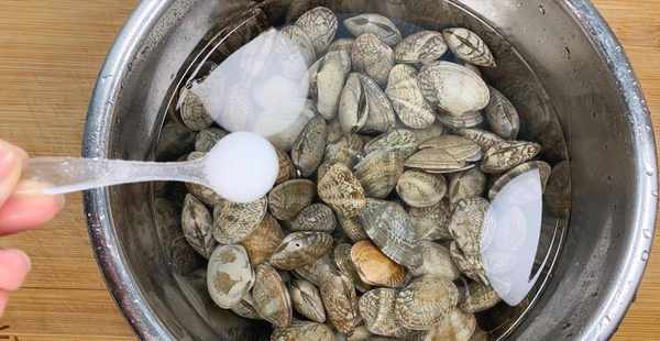 具體做法:1、春天的花蛤最鮮美也最營養,它是一種高蛋白低脂肪的海鮮類食物,常吃一些花蛤能夠補鈣、降低膽固醇及補充體內所需要的營養物質。買回來的花蛤要吐沙,花蛤肉裡面會有很多的沙子,把它放入大盆內,加入適量的清水沒過花蛤,再撒上2勺食用鹽靜置1個小時,1個小時候水會變得很渾濁,會吐出很多的臟東西,最後再沖洗幾遍瀝水備用即可。