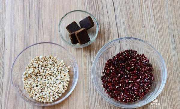 準備食材:赤小豆200克,3塊紅糖,薏仁米200克