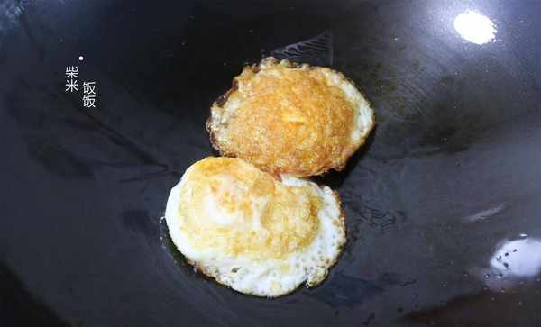 2,熱鍋涼油,打入雞蛋,根據自己的需要,煎幾個荷包蛋。