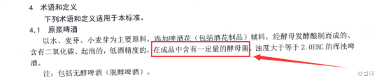 值得註意的是,泰山原漿啤酒(28天)執行的是自身企業標準(Q/TPJ 0028S-2019),該標準在定義中明確要求其原漿啤酒必須含有酵母。