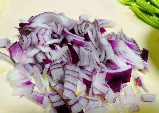 首先把裡脊肉洗凈切成條狀放入碗中,加入適量的淀粉、生抽、料酒,抓勻之後醃制一段時間。洋蔥剝皮清洗幹凈後切成絲,小米椒切成丁。