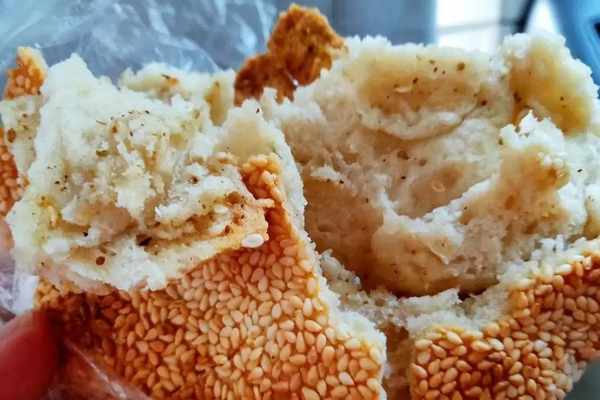 大名人吃芝麻焦燒餅多種多樣,非常隨意,可以單吃,可以夾辣片,可以夾煎雞蛋、煎火腿,可以買瞭即吃,看著電視吃,可以出差吃…