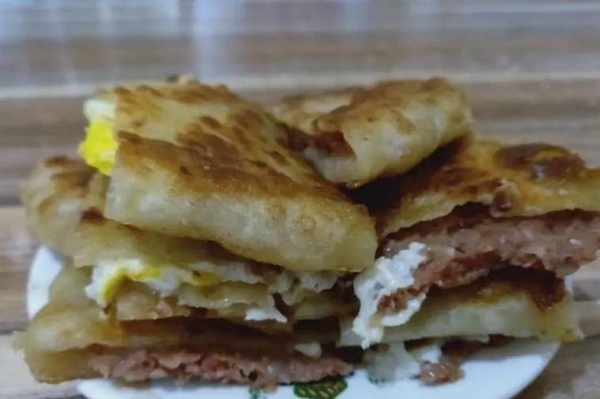 羊肉餅主要原料有:面粉、羊肉、蔥薑蒜。肉餅餡還可隨人們的不同口味添加2-4個不等,也可添加雞蛋,多少隨意。其制作方法:一、用中筋面粉溫水和面,之後醒30分鐘。二、將羊肉絞成或用刀剁成肉泥,放入蔥薑蒜、秘制藥料粉、鹽、味精、少許淀粉、醬油或老抽、香油、豆瓣醬等,不添加蔬菜,加入適量水攪拌均勻,團成團備用。三、把醒好的面分成小劑子,包入肉餡,用搟面杖搟成薄厚均勻的圓餅。四、在鐵鏊子上刷一層油,待油熱後把搟好的肉餅放到鐵鏊子上,邊烙邊抹油,兩面均煎烙為金黃色即好。五、出鏊後切成三角塊裝盤食用。