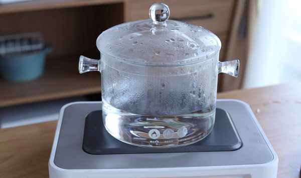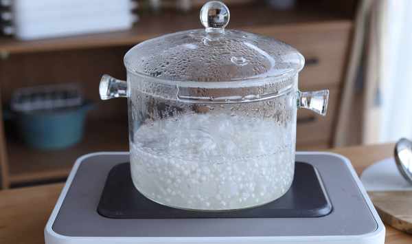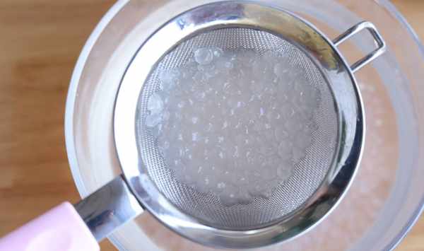7.煮至西米中間有小小的白心時關火,倒入冷開水內,過一會就變透明瞭。