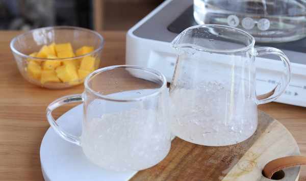但是很多的小夥伴在做楊枝甘露的時候遇到一個小難題,就是煮西米。每次都是做瞭西米都無法熟透,都會出現一點點的小白心,做得都快失去信心瞭呢!其實煮西米有個小技巧,就是過冷水。每次煮先將水煮開再倒入西米,煮西米的水也要多一點,避免煮成糊瞭。在很多的平臺上有的親寫方子都是需要將西米煮開燜20分鐘,再煮開燜20分鐘,其實不用這麼麻煩,隻需要將西米煮到中間一點點白心(大概15-20分鐘),然後準備一大碗的冷(冰)開水,將西米到進去,反復的用漏勺拌幾次就可以瞭,如果還白心可以再過一次冷開水,沒一會就變透明瞭哦!
