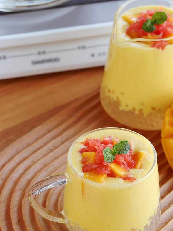 楊枝甘露是一款香港極具特色的甜點,受到瞭很多吃貨們的歡迎,主要食材是西柚,芒果,西米,椰漿和淡奶。先將芒果、椰漿和淡奶打成果泥,在將西米煮熟,混合一起後加入西柚果肉和芒果粒,芒果果泥加上細滑香濃的椰漿,滿滿一口都是果肉和Q彈的西米,酸酸甜甜的,感覺每一口都是一種享受呀!