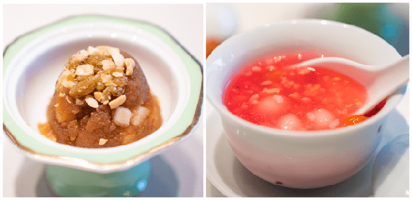 八寶鍋蒸是四川傳統筵席中的甜食,需要加入八種幹果、蜜餞,加豬油炒制,香潤酥口。再配上源自青城山的醪糟,時令水果和小湯圓共同熬煮的醉八仙,微妙的果酸和酒香恰好解膩。
