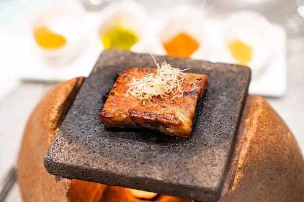 一口咬下,石板炙烤後的牛肉汁水四溢,蘸上橙皮碟,柳橙的香氣不僅能中和油膩帶來的厚重感,還能口口生津。